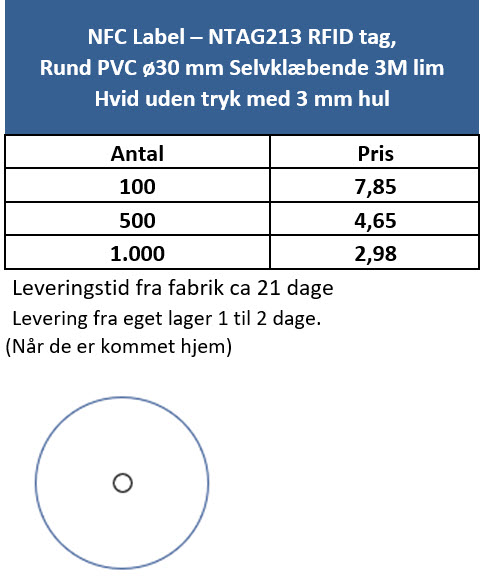 Vi anbefaler NTAG213 - Ø25 mm (Diameter)